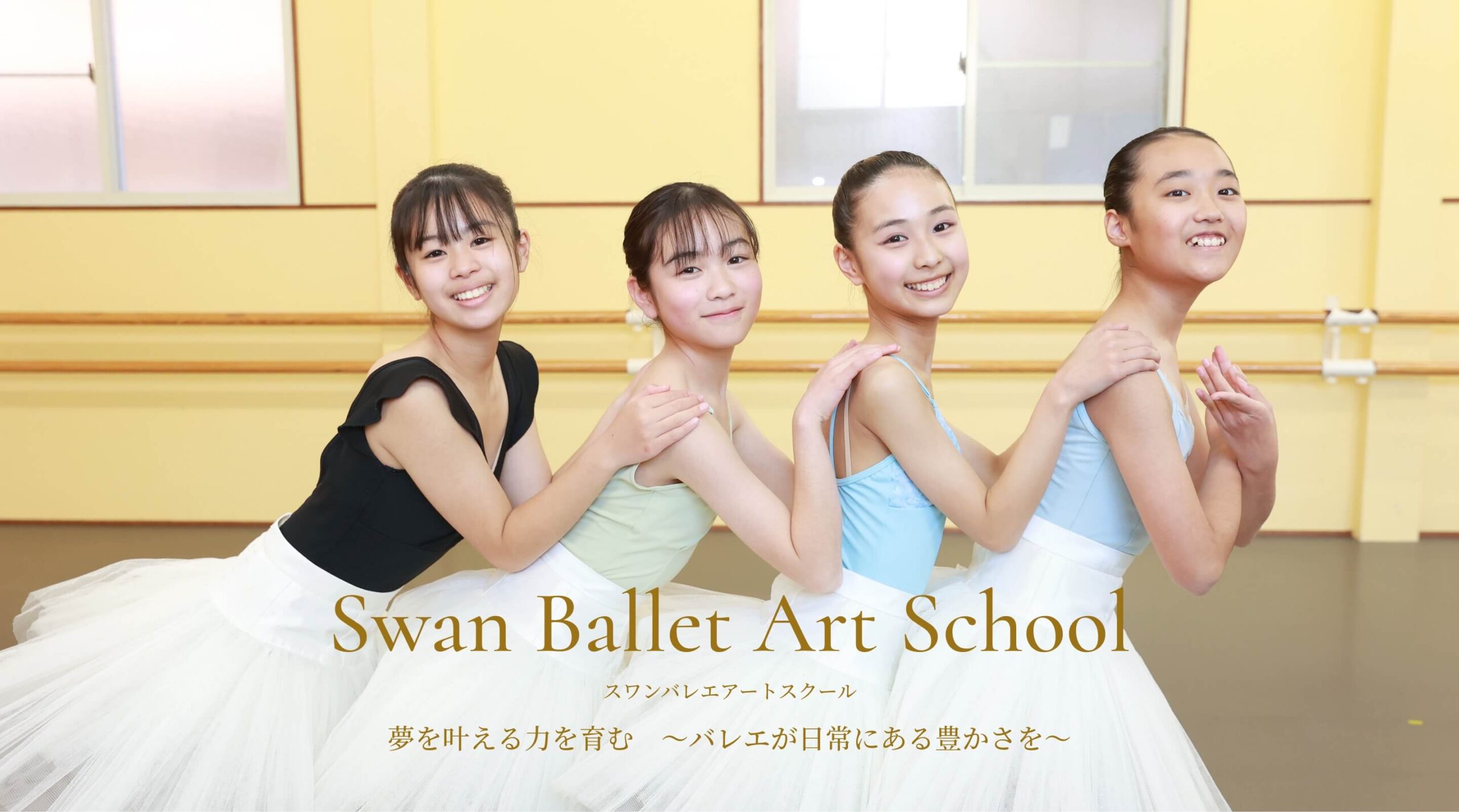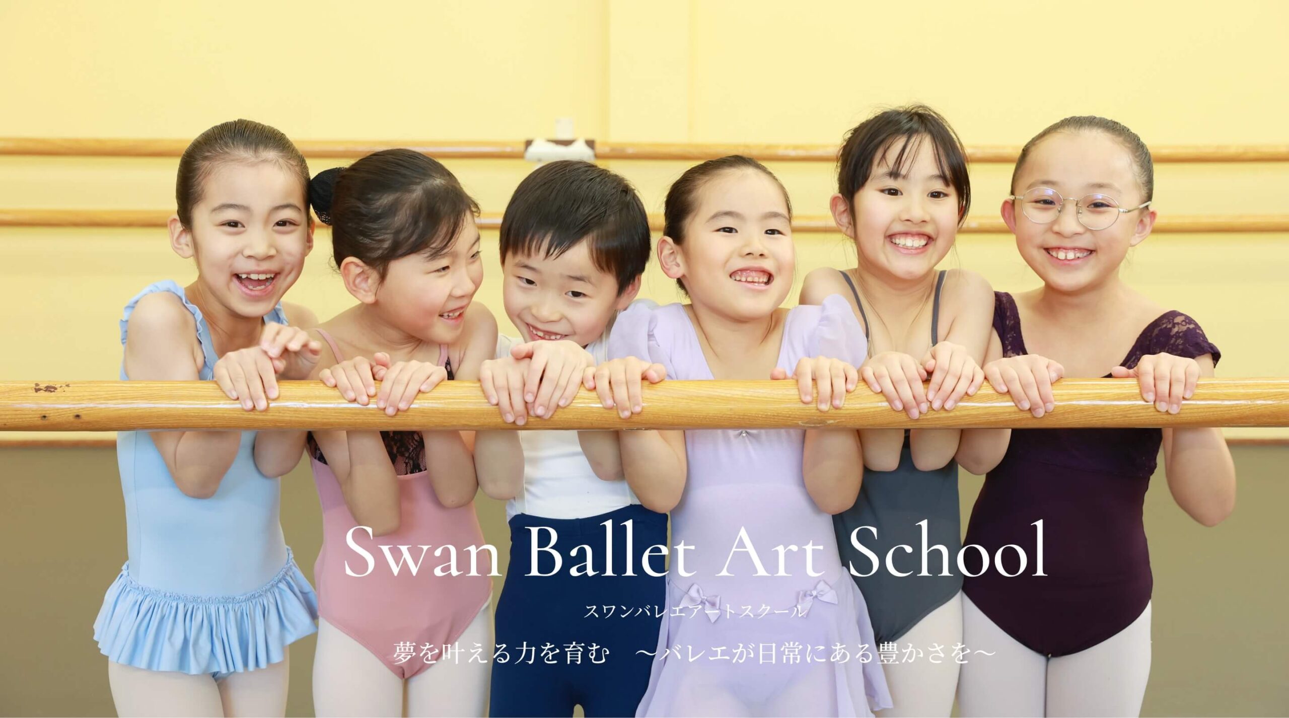 スワンバレエアートスクールは、1970年創立の地元に根付いた「はじめの一歩」のバレエ教室。憧れのバレエの世界の入り口として、踊る楽しさ、本物のバレエの魅力を伝えています。好きなバレエを踊ることで「笑顔と夢中」を生み、「なりたい」を実現していく。